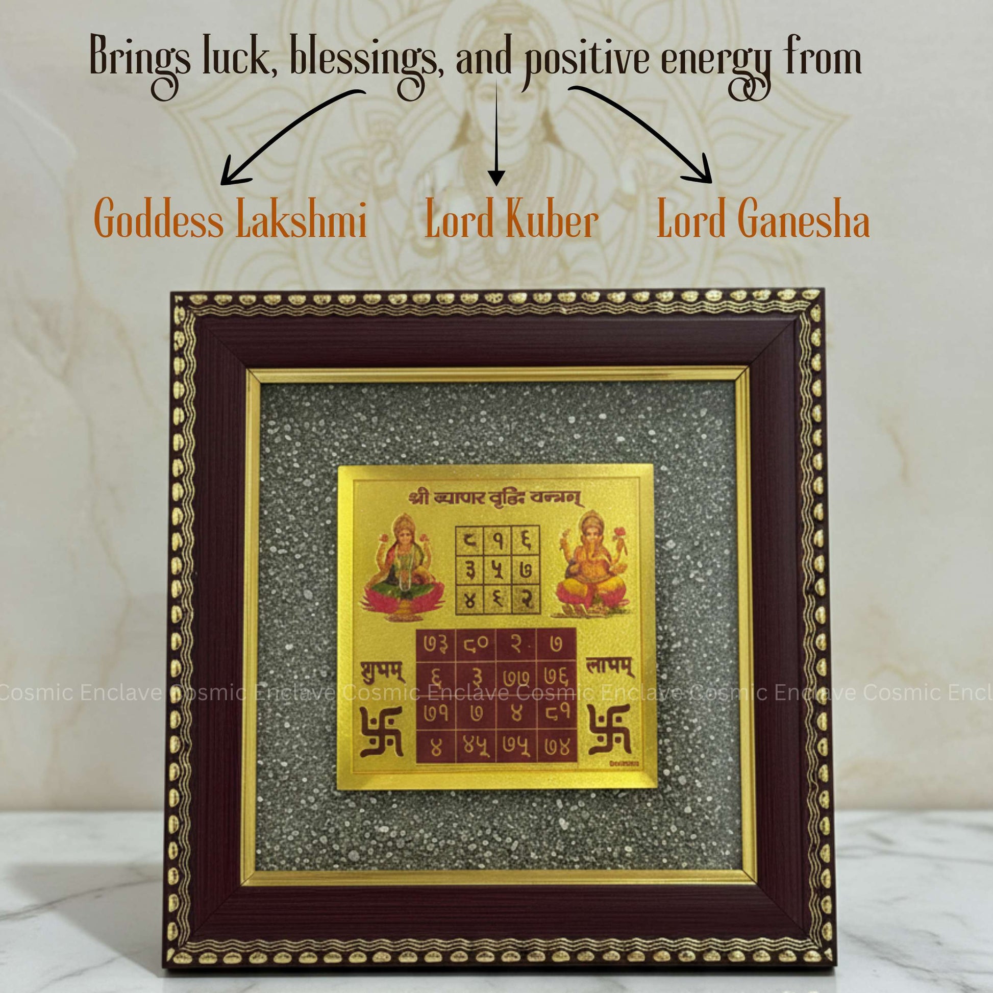 Perfect for placement in shops, offices, work desks, or home temples, this frame is a powerful spiritual tool for those seeking success, prosperity, and long-term growth.
