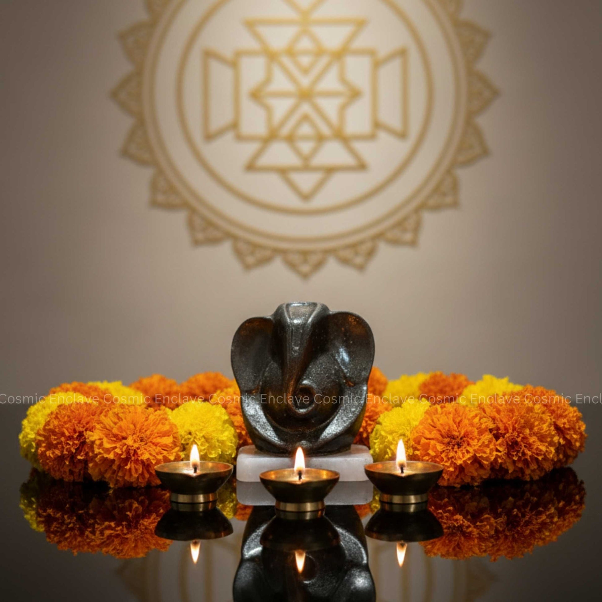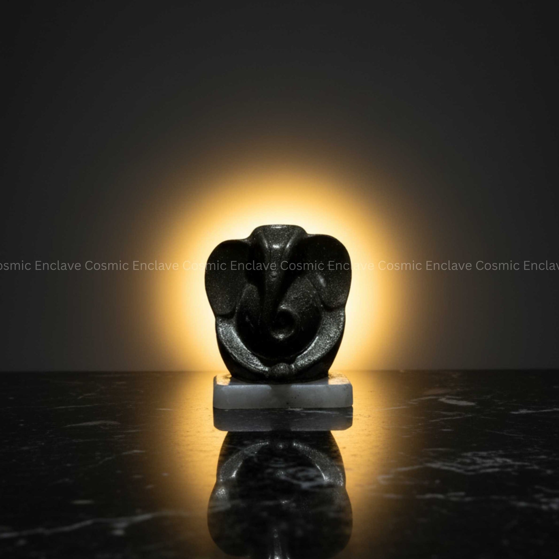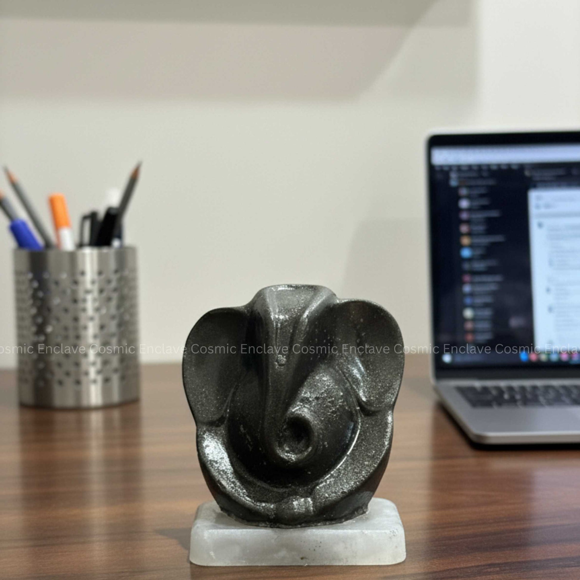 Pyrite, revered as the Stone of Wealth, attracts abundance, success, and protective energy, while Lord Ganesha—the remover of obstacles—brings clarity and new beginnings. The Selenite base amplifies this energy by continuously cleansing and charging both the idol and its surroundings.