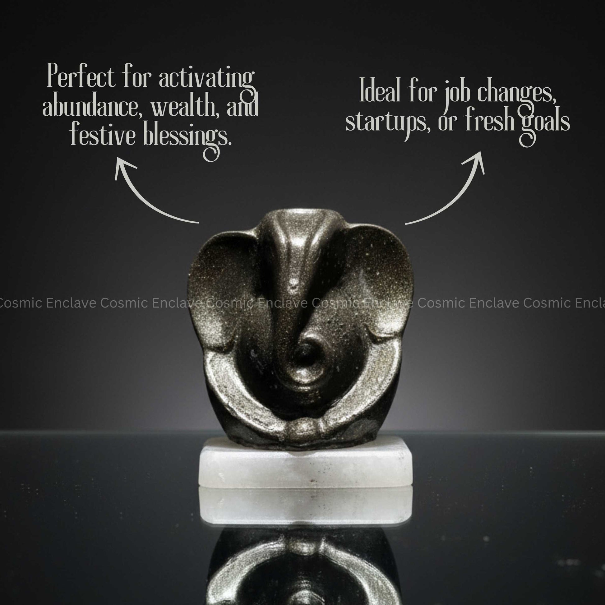 Pyrite Ganesha (With Selenite Plate) (Unveiling Wisdom & Prosperity)